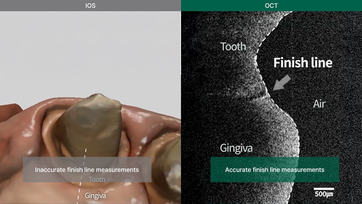 Next-generation OCT-integrated scanners combine conventional surface scanning with OCT-based internal cross-sectional imaging. This dual acquisition within a single device is highly meaningful—it allows clinicians to obtain both external morphology and internal structural data simultaneously.